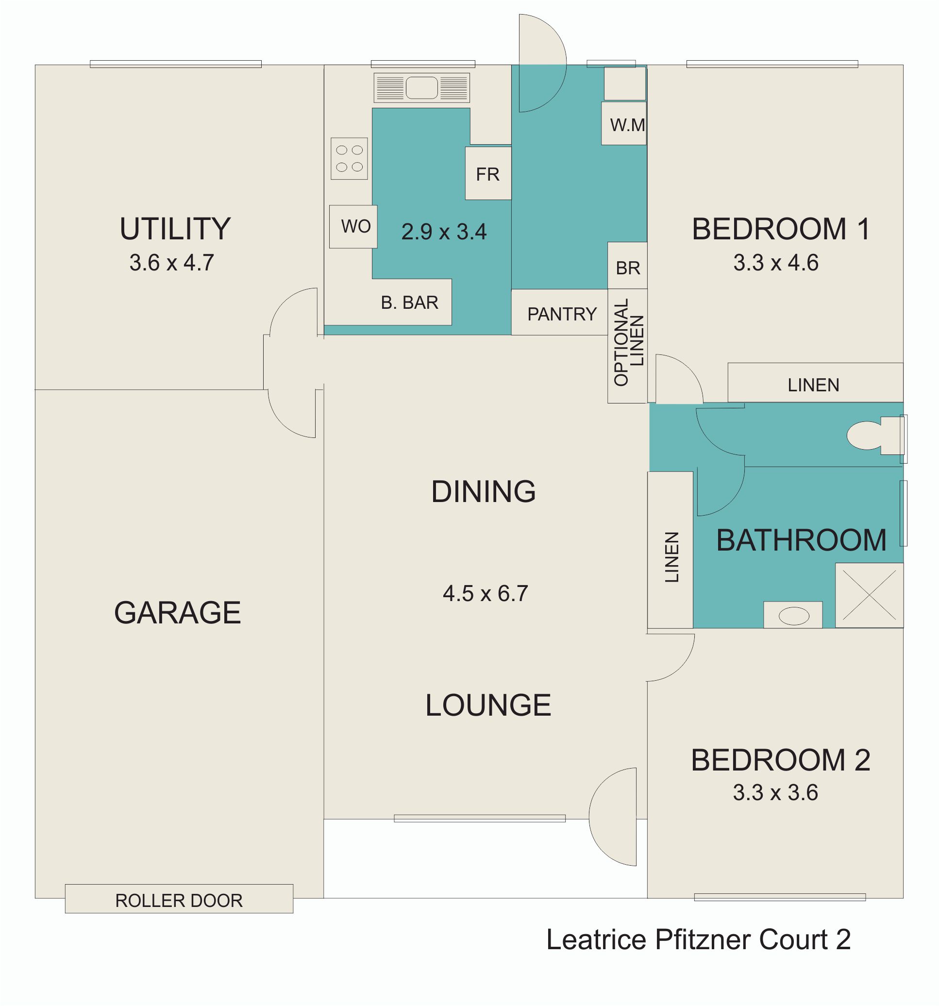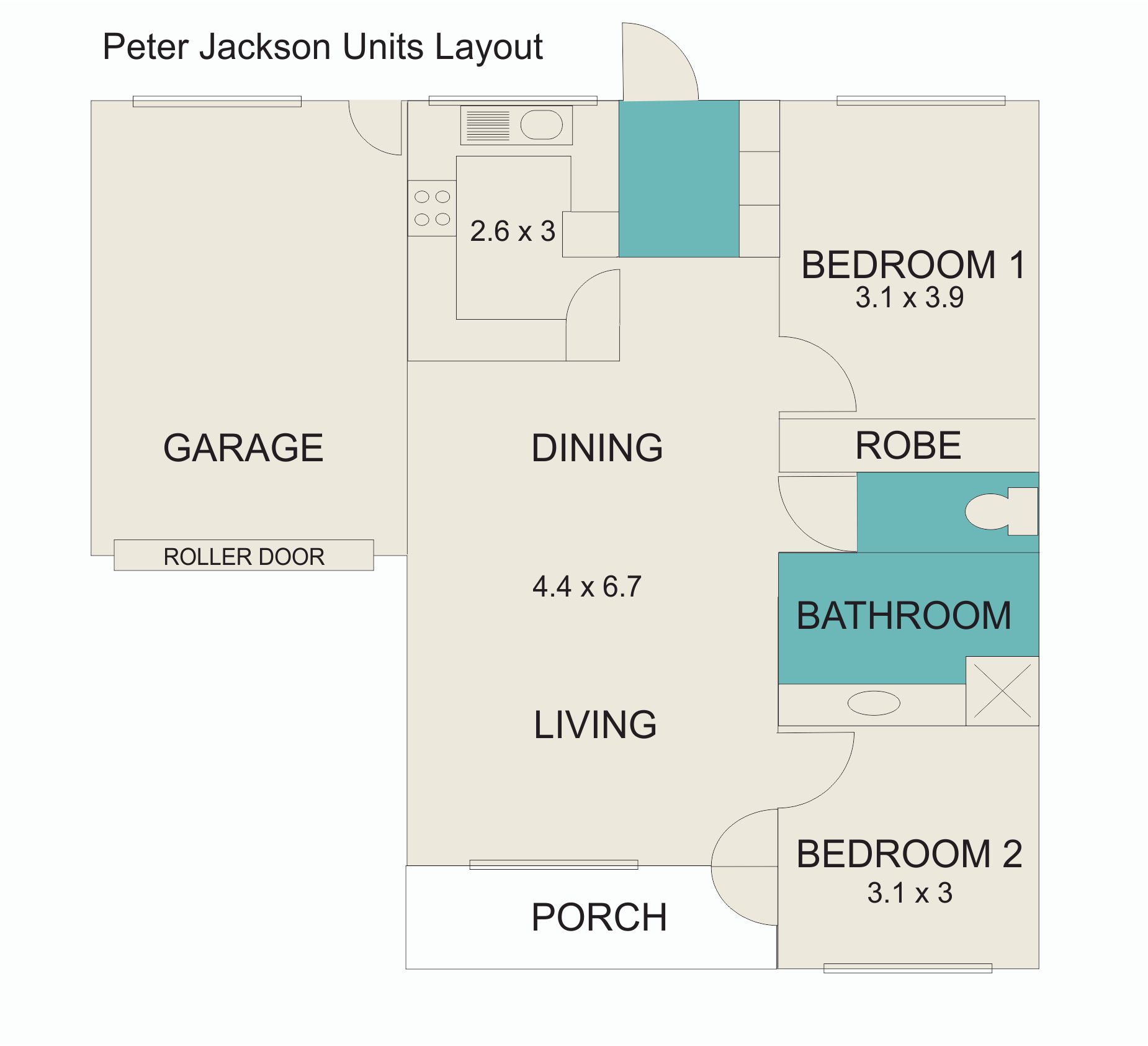 that include 2 or 3 bedrooms, open plan living/dining, kitchen, separate bathroom, toilet, laundry and garage under the main roof.